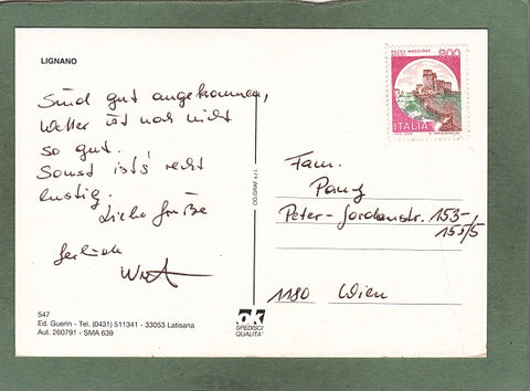 AK Lignano Sabbiadoro. Ungelaufen, aber beschrieben. Großformat. Verlag: Guerin. Nummeriert: 547. Zustand: gut.