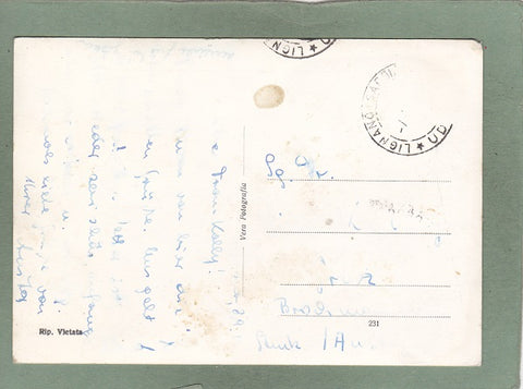 AK Lignano Sabbiadoro. Gelaufen, aber Briefmarke wurde entfernt. Großformat. Zustand: stark bestoßen.