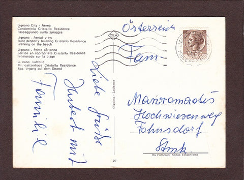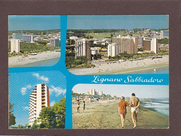 AK Lignano Sabbiadoro. Gelaufen 1973. Großformat. Verlag: Cigaina. Nummeriert: 20. Zustand: Ecken angeknickt, Knick über dem rechten unteren Eck.