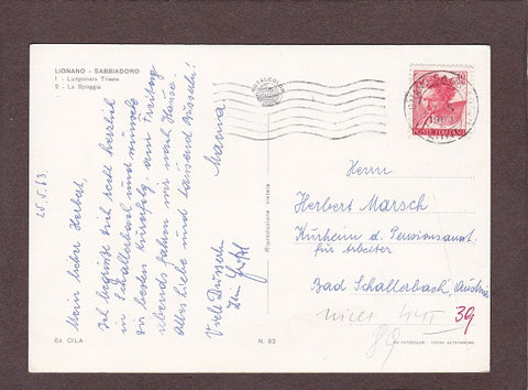 AK Lignano Sabbiadoro. Gelaufen 1963. Großformat. Verlag: CILA. Nummeriert: 83. Zustand: Oberfläche knittrig.