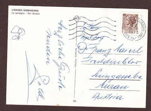 AK Lignano Sabbiadoro. La spiaggia. Gelaufen 1973. Großformat. Verlag: Cigaina. Nummeriert: 155. Zustand: gut, nur leichte Randläsuren.