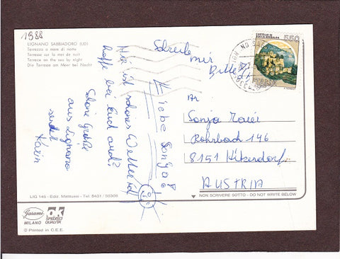 AK Lignano Sabbiadoro. Terrazza a mare di notte. Gelaufen. Großformat. Verlag: Matiussi. Nummeriert: 145. Zustand: gut, linke Ecken angeknickt.