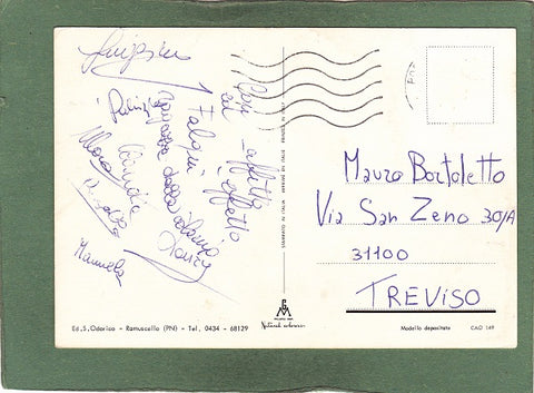 AK Marina di Caorle. Gelaufen, aber Briefmarke wurde entfernt. Großformat. Verlag: S. Odorico. Nummeriert: 149. Zustand: in linker oberer Hälfte bestoßen, am Rand und Ecken etwas bestoßen.