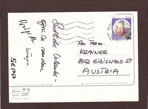 AK Saluti da Lignano. Gelaufen. Großformat. Verlag: Mattiussi. Nummeriert: 233. Zusand: rechtes unteres Eck geknickt, sonst leichte Läsuren.