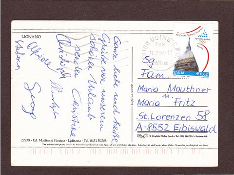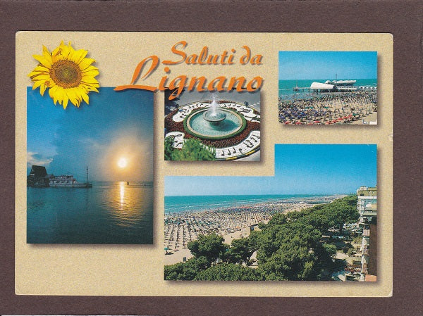 AK Saluti da Lignano. Gelaufen 2004. Großformat. Verlag: Mattiussi. Nummeriert: 22938. Zustand: stärker bestoßen.