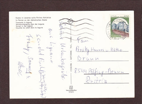 AK Tramonto.Siamo in vacanza sulla Riviera Adriatica. Gelaufen. Großformat. Verlag: Cigaina. Zustand: Knick am oberen Rand ca. Mitte.