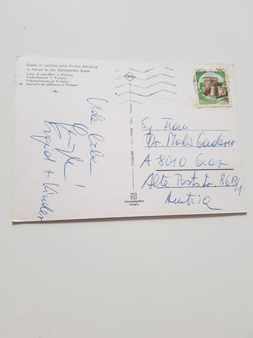 AK Siamo in vacanza sulla Riviera Adriatica. Case di pescatori a Primero. Gelaufen. Großformat. Zustand: gut.