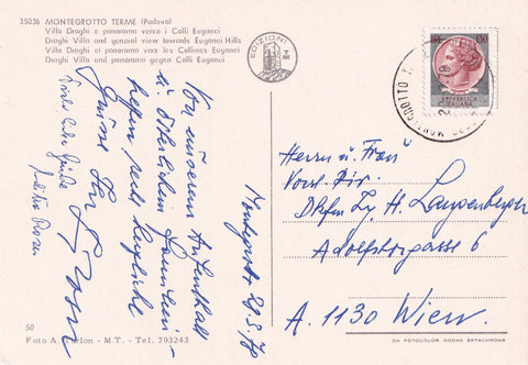 AK Montegrotto Terme. Villa Draghi e panorama verso i Colli Euganei. Gelaufen. Großformat. Verlag: Turlon. Nummeriert: 50. Zustand: gut.