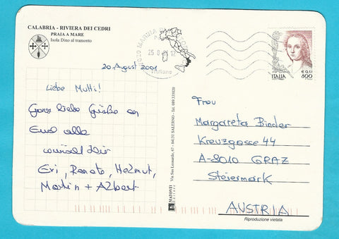 AK Praia a Mare. Isola di Dino. Gelaufen. Neues Großformat. Verlag: Matonti. Zustand: etwas zerkratzt.