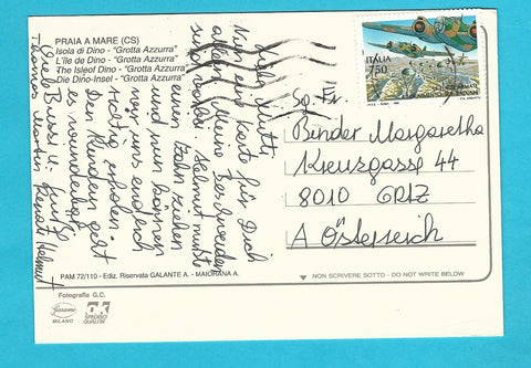 AK Praia a Mare. Isola di Dino. Grotta Azzurra. Gelaufen. Großformat. Verlag: Galante. Nummeriert: 72/110. Zustand: gut.