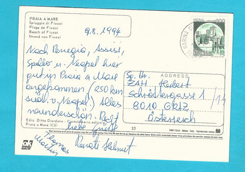 AK Praia a Mare. Spiaggia di Fiuzzi. Gelaufen. Großformat. Verlag: Giordano. Nummeriert: 22. Zustand: gut.