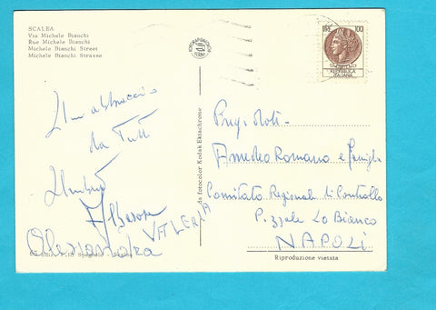 AK Scalea. Via Michele Bianchi. Gelaufen. Großformat. Verlag: F.lli Spagnolo. Nummeriert: 65. Zustand: gut, Ecken etwas angestoßen, leichte Knicke am unteren Rand in der rechten Hälfte.
