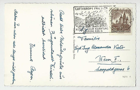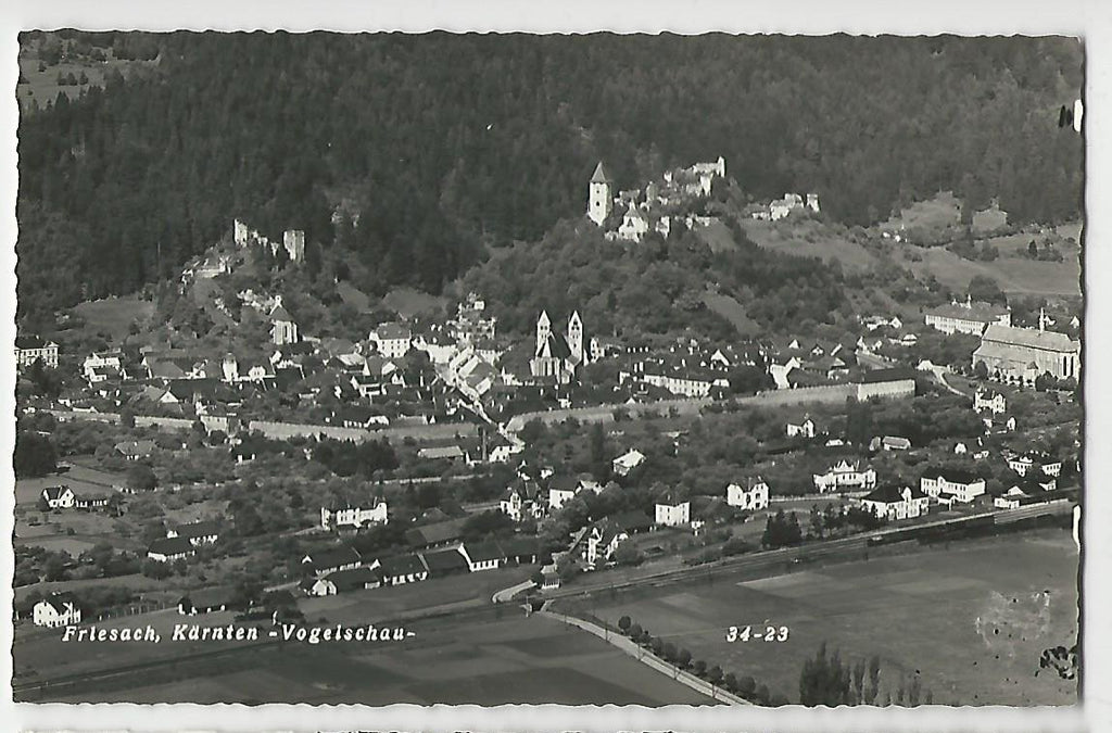 AK Friesach. Vogelschau. Gelaufen. Kleinformat. Verlag: Glantschnigg. Nummeriert: 34-23. Zustand: gut, wenig bestoßen.