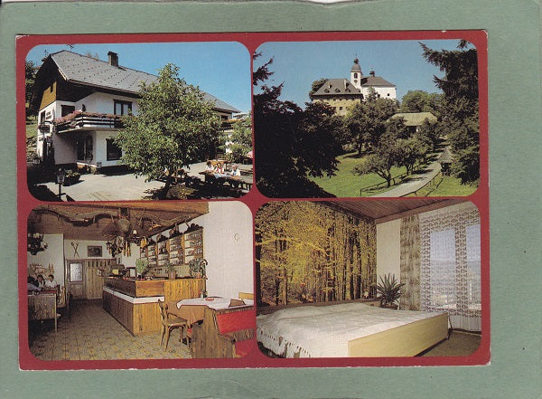 AK Guttaring. Gasthaus Lindenwirt im Wallfahrtsort Maria Hilf. Familie Sonnberger. Gelaufen 1984. Großformat. Verlag: Rainer Werbung. Nummeriert: 8083. Zustand: Knick in der rechten oberen Hälfte, linkes oberes und rechtes unteres Eck angeknickt.