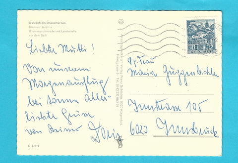 AK Ossiach am Ossiacher See. Blumenpromenade und Landestelle vor dem Stift. Gelaufen. Großformat. Verlag: Schilcher. Nummeriert: 4/512. Zustand: gut, linkes oberes Eck geknickt.