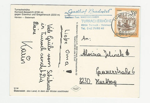 AK Turracherhöhe. Kornock-Sessellift gegen Eisenhut und Gregerlenock. Gelaufen. Großformat. Verlag: Steinmann. Nummeriert: W 94. Zustand: gut.