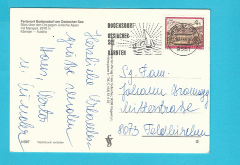 AK Grüße aus Bodensdorf am Ossiacher See. Gelaufen. Großformat. Verlag: Schilcher. Nummeriert: 4/587. Zustand: gut.