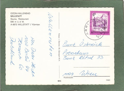 AK Millstatt. Ozon-Hallenbad. Gelaufen 198?. Großformat. Verlag: J. Steiner. Nummeriert: 9872. Zustand: gut, Knick am rechten Rand oben.