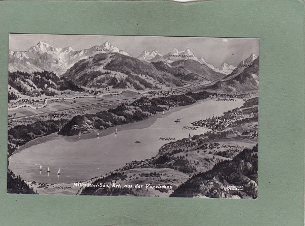 AK Millstätter-See aus der Vogelschau. Ungelaufen. Kleinformat. Verlag: Knollmüller. Nummeriert: 631/182. 1939. Zustand: Kleberückstände auf Rückseite, sonst O.k.