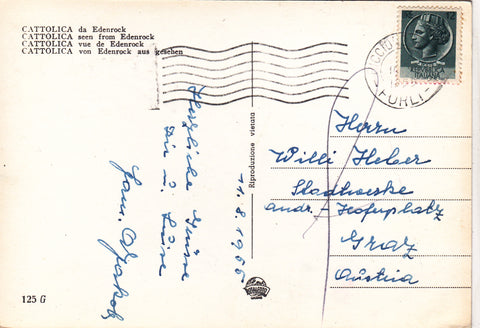 AK Cattolica da Edenrock. Gelaufen 1955. Großformat. Nummeriert: 125 G. Zustand: gut.