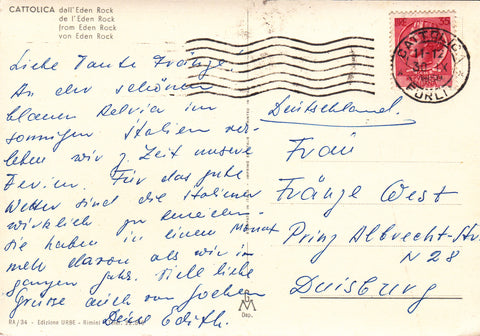 AK Cattolica dall'Eden Rock. Gelaufen. Großformat. Verlag: Urbe. Nummeriert: RA/34. Zustand: Oberfläche knittrig.