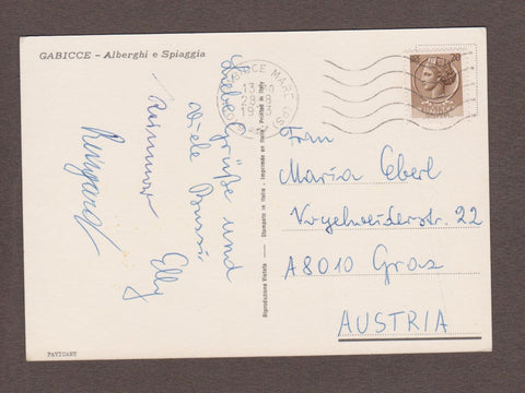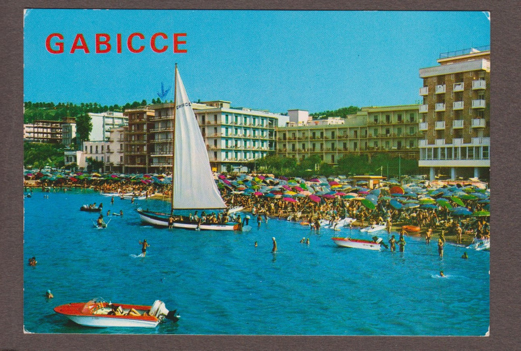 AK Gabicce - Alberghi e Spiaggia. Gelaufen 1973. Großformat. Verlag: PAVICART. Zustand: gut, obere Ecken wenig angeknickt.