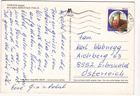 AK Gabicce Mare. Gelaufen. Großformat. Verlag: Marchi. Nummeriert: ga. 148. Zustand: gut, linke Ecken angeknickt.