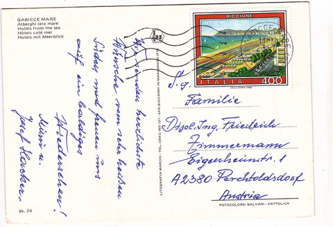 AK Gabicce Mare. Alberghi. lato mare. Gelaufen. Großformat. Verlag: Marchi. Nummeriert: ga. 24. Zustand: gut, Ecken und am Rand leicht angestoßen.