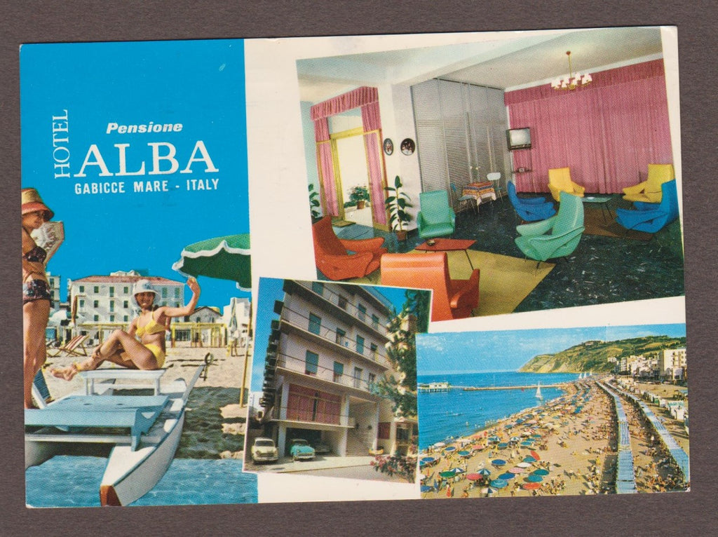 AK Gabicce Mare. Hotel Pensione Alba. Gelaufen. Großformat. Verlag: Galvani. Zustand: gut, leichte Läsuren.