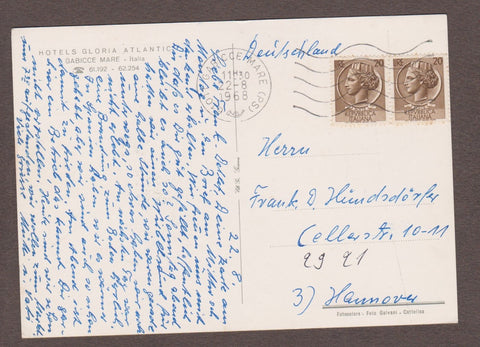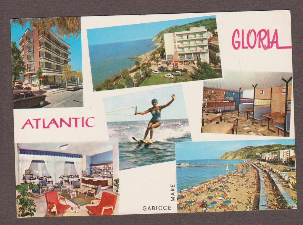 AK Gabicce Mare. Hotels Gloria Atlantic. Gelaufen 1968. Großformat. Zustand: gut, leichte Läsuren.