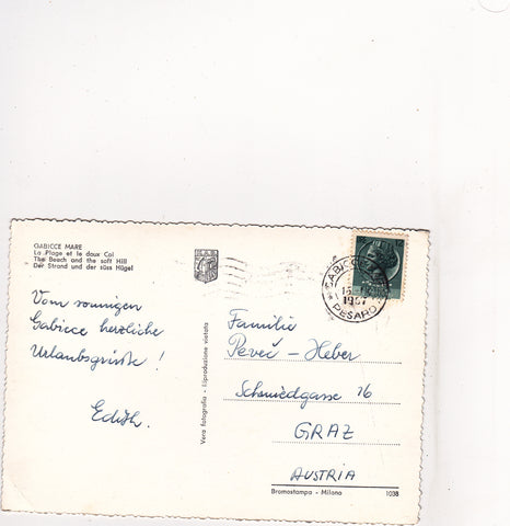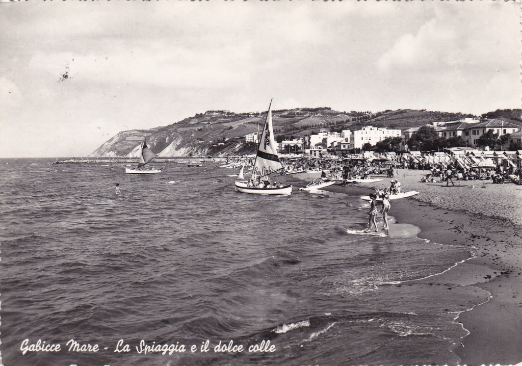 AK Gabicce Mare - La Spiaggia e il dolce colle. Gelaufen 1957. Großformat. Verlag: MAB. Zustand: gut, rechtes unteres Eck geknickt, obere Ecken wenig angeknickt.