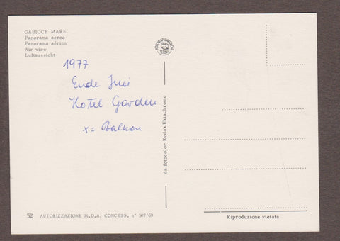AK Gabicce Mare. Panorama aereo. Ungelaufen. Großformat. Verlag: Fotorapidacolor. Nummeriert: 52. Zustand: gut, kleines Kugelschreiberkreuz in rechter Bildhälfte.