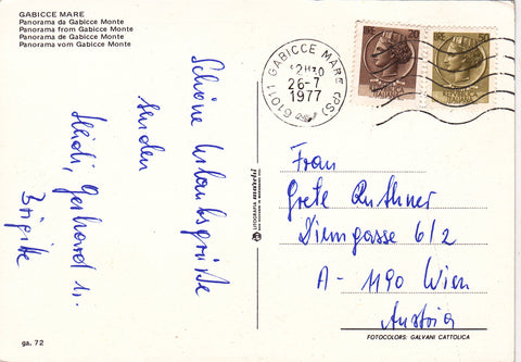 AK Gabicce Mare. Panorama da Gabicce Monte. Gelaufen 1977. Großformat. Verlag: marchi. Nummerirt: ga. 72. Zustand: gut.