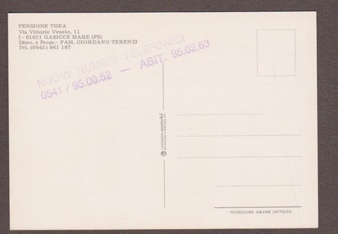 AK Gabicce Mare. Pensione Thea. Via Vittorio Veneto 11. Ungelaufen. Großformat. Verlag: Marchi. Zustand: gut.