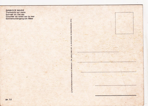 AK Gabicce Mare. Tramonto sul mare. Ungelaufen. Großformat. Verlag: Marchi. Nummeriert: ga. 12. Zustand: gut, leichte Läsuren.