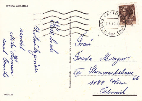 AK Riviera Adriatica. Gelaufen 1973. Großformat. Verlag: PAVICART. Zustand: gut, linkes oberes Eck geknickt.