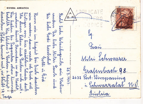 AK Riviera Adriatica. Gelaufen 1967. Großformat. Verlag: ABR. Nummeriert: 59/38. Zustand: gut.