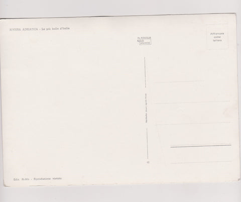 AK Riviera Adriatica - La piu bella d'Italia. Ungelaufen. Format: 14,8 x 21 cm. Verlag: Ri-Ma. Nummeriert: 12. Zustand: gut, Ecken etwas angestoßen, zwei kleine Knicke in linker Bildhälfte.