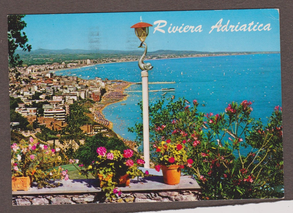 AK Riviera Adriatica. Panorama da Gabicce. Gelaufen. Großformat. Verlag: Marcaccini. Nummeriert: 50912. Zustand: mehrere Knicke über dem rechten unteren Eck, rechtes oberes Eck geknickt.