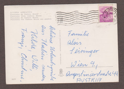 AK Riviera Adriatica. Panorama da Gabicce Monte. Gelaufen 1963. Großformat. Verlag: MAB. Nummeriert: 39177. Zustand: linke Ecken geknickt, Oberfläche knittrig.