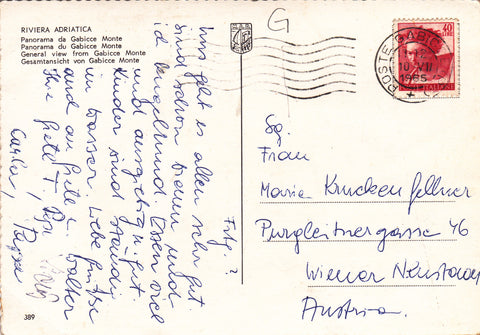 AK Riviera Adriatica. Panorama da Gabicce Monte. Gelaufen 1965. Großformat. Verlag: M.A.B. Nummeriert: 389. Zustand: Knicke.