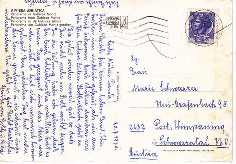 AK Riviera Adriatica. Panorama da Gabicce Monte. Gelaufen 1970. Großformat. Verlag: Riviera NB. Zustand: gut, linkes unteres Eck geknickt.