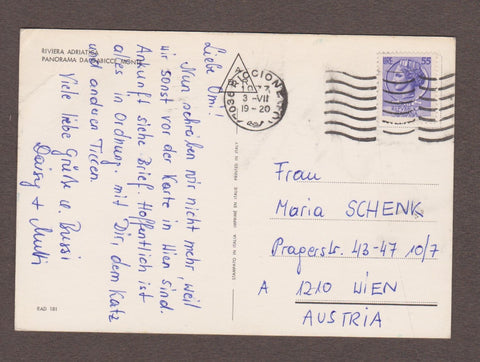 AK Riviera Adriatica. Panorama da Gabicce Monte. Gelaufen 1973. Großformat. Nummeriert: 181. Zustand: rechtes oberes Eck mehrfach geknickt, linkes unteres Eck angeknickt.