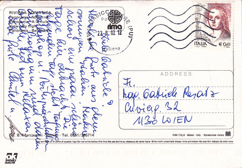 AK Riviera Adriatica. Panorama Notturno. (dal Gabicce Monte) Gelaufen 2002. Großformat. Verlag: Marcaoncini. Zustand: stärker bestoßen.