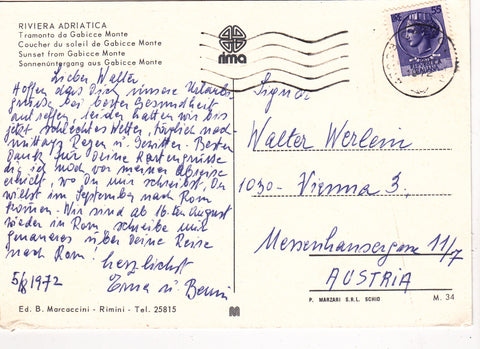 AK Riviera Adriatica. Tramonto da Gabicce Monte. Gelaufen. Großformat. Verlag: Marcaccini. Nummeriert: M. 34. Zustand: Ecken geknickt bzw. bestoßen.