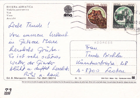 AK Riviera Adriatica. Veduta panoramica. Gelaufen. Großformat. Verlag: Marcaccini. Nummeriert: M 36. Zustand: linke Ecken geknickt, sonst O.k.