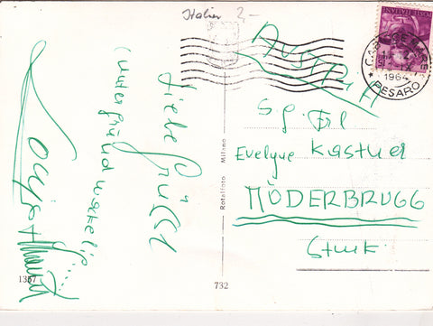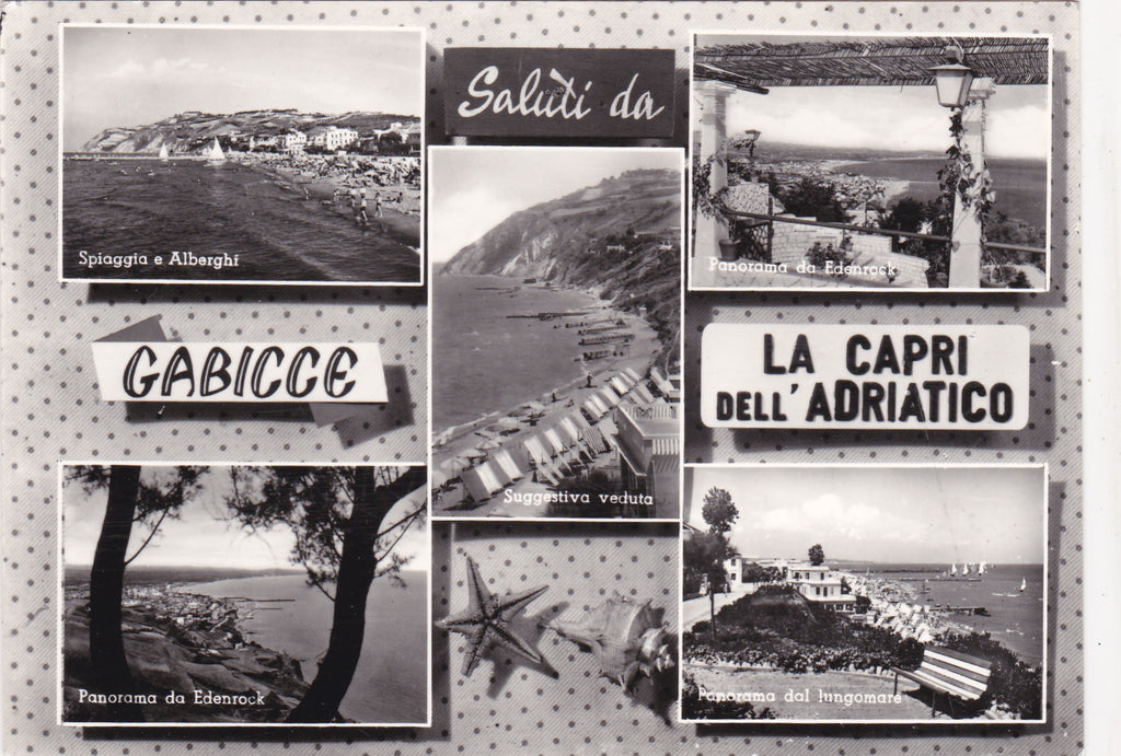 AK Saluti da Gabicce. La Capri dell'Adriatico. Gelaufen 1964. Großformat. Nummeriert: 1357. Zustand:Knick über dem oberen mittleren Bild.