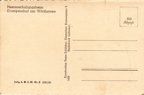AK Krumpendorf am Wörthersee. Heereserholungsheim. Ungelaufen. Kleinformat. Verlag: Schilcher. Nummeriert: 1458. Zustand: gut.