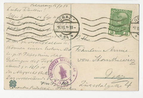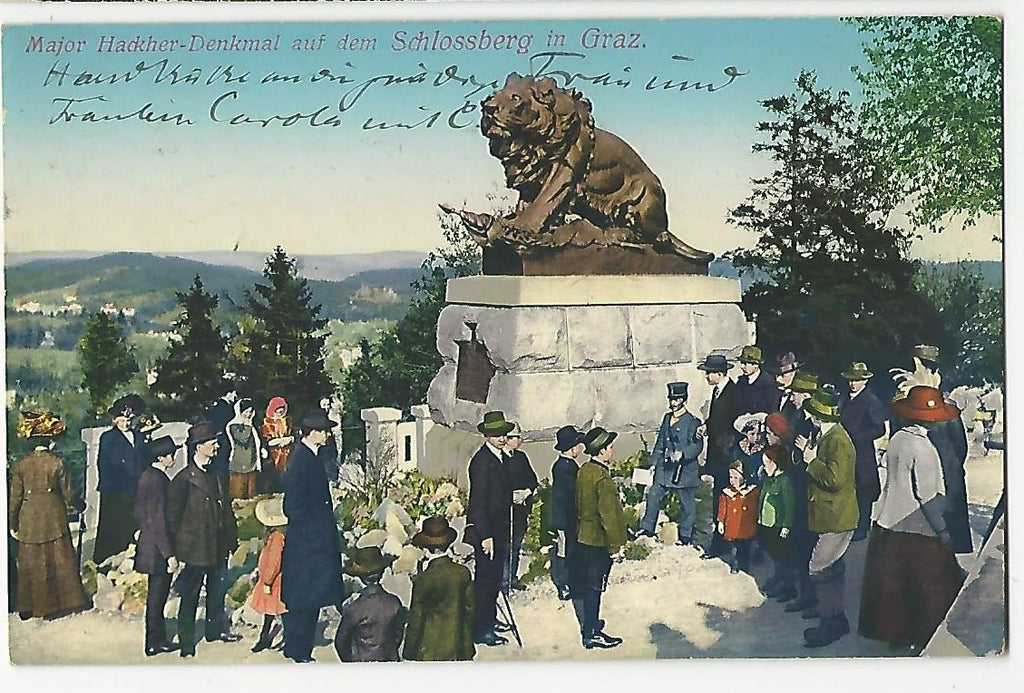 AK Major Hackher-Denkmal auf dem Schlossberg in Graz. (1913/14) Gelaufen. Kleinformat. Verlag: Sickha. PLW. Nummeriert: 16682. Zustand: gut.
