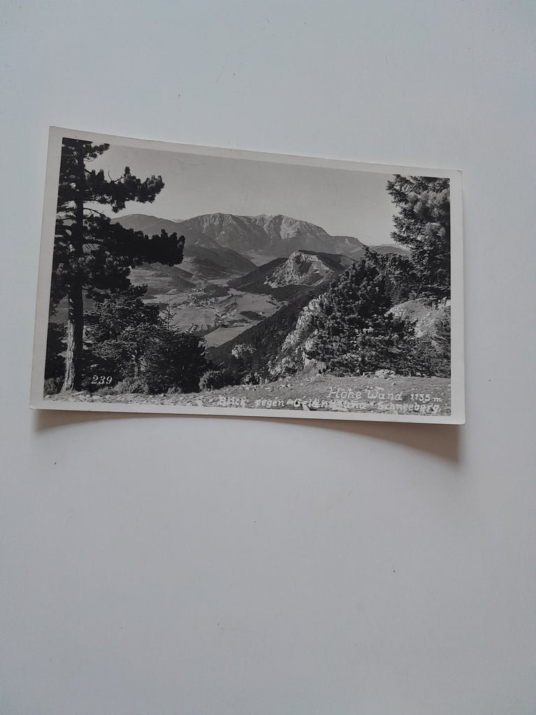 AK Hohe Wand. Blick gegen Geländ und Schneeberg. Gelaufen. Kleinformat. Verlag: Schneidhofer. Nummeriert: 239. Zustand: leicht berieben.